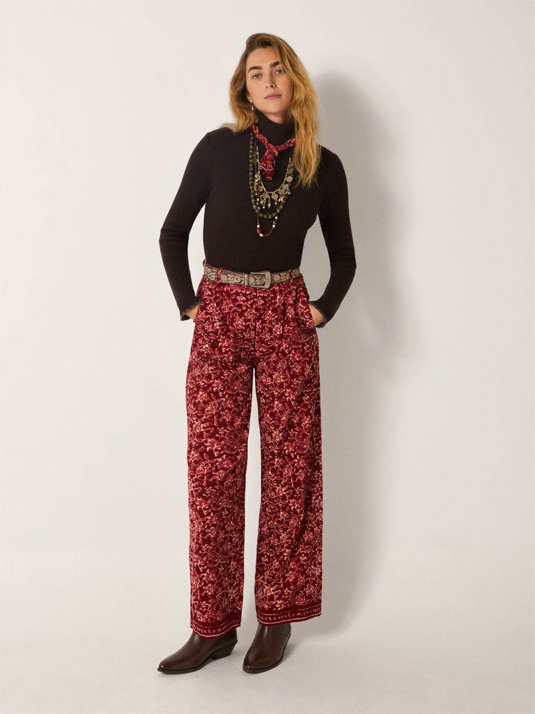 Cut in soft micro-corduroy, Jimmy carries a texture that almost hums. There’s a raw energy in these velvet reds — a print that feels both decadent and undone. Somewhere between a smoky dive bar and a faded carnival ride.