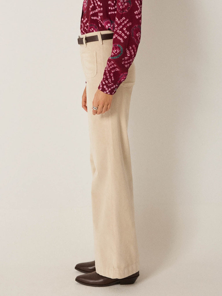 Embrace the chill with these corduroy pants, a winter staple with attitude, in ecru color.