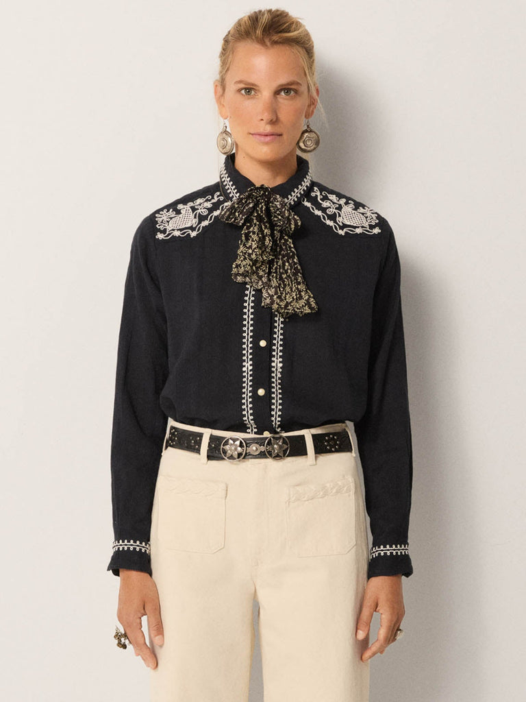 Meant to be worn with nonchalance — as a foulard, top, belt or knotted at the collar. More than a styling piece, it’s about the gesture and the mood it creates.