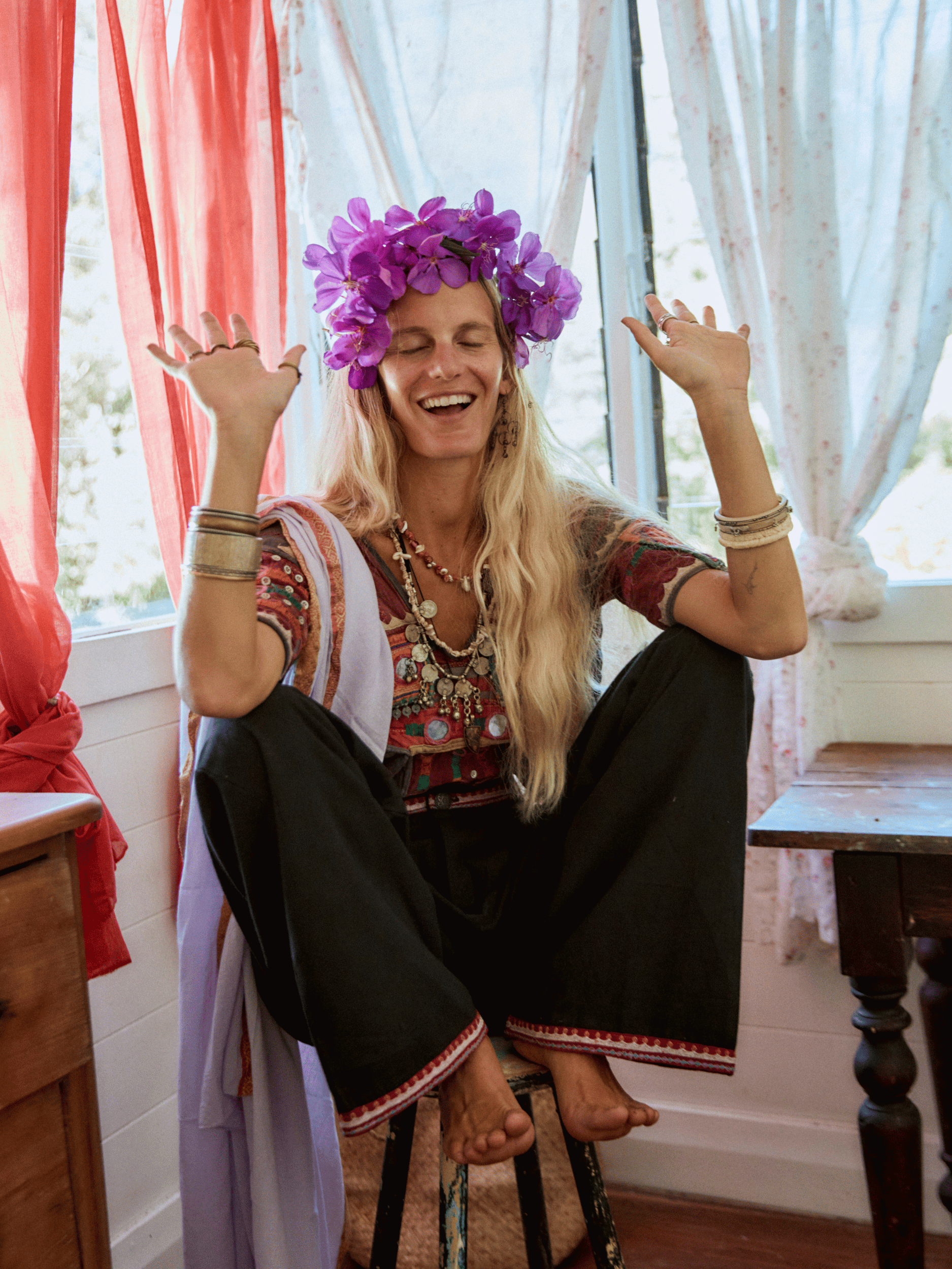 We spent a day in Byron Bay, by the ocean, with Hanalei's family. There's a quiet, effortless beauty in the way they live, deeply connected, grounded in nature, and guided by simplicity. Their world moves with the rhythm of the sea, shaped by love, presence, and a sense of freedom.